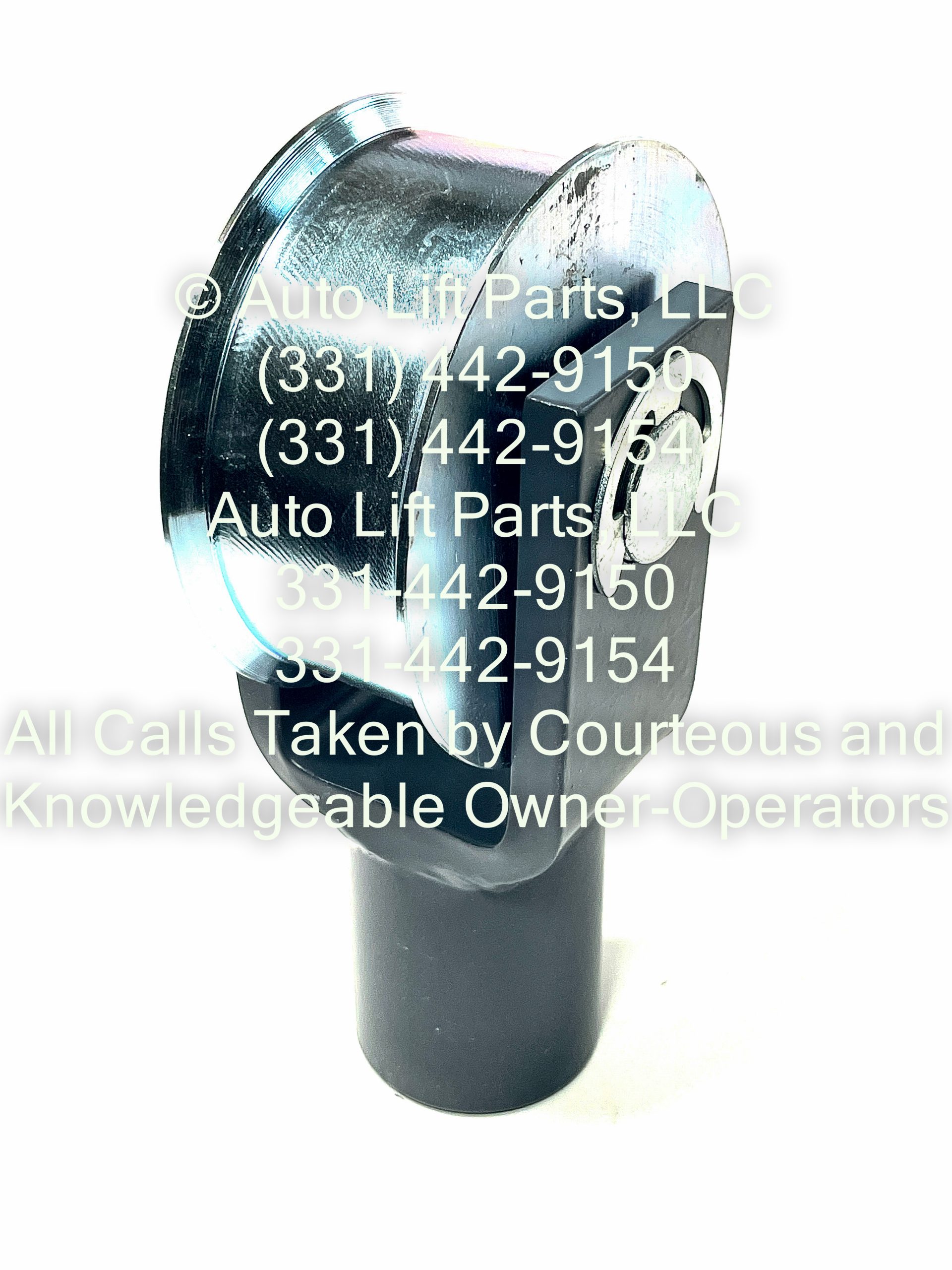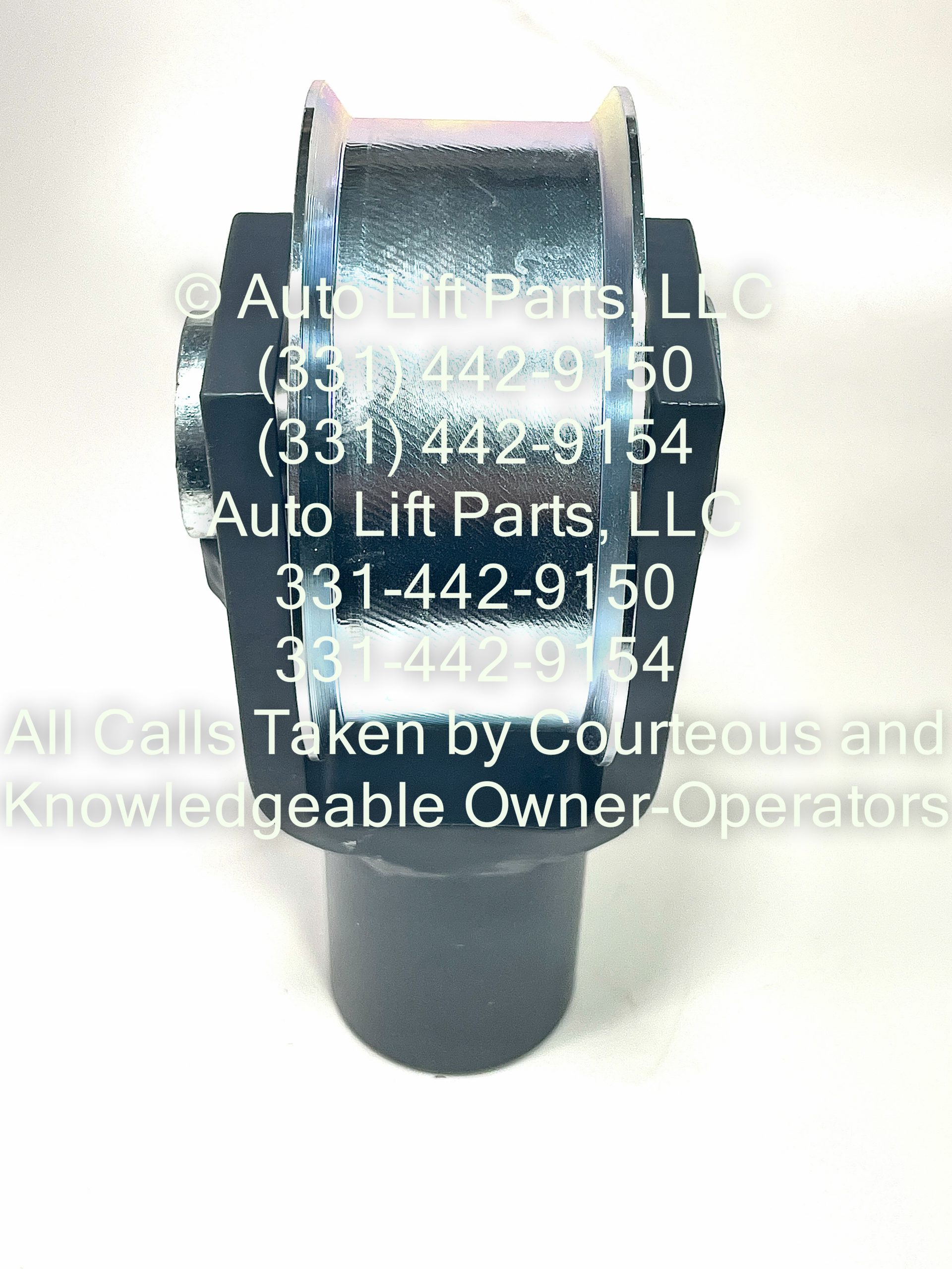 This yoke assembly includes the chain roller, as pictured, and slips over the hydraulic cylinder rod end that has a 1-1/2″ diameter.